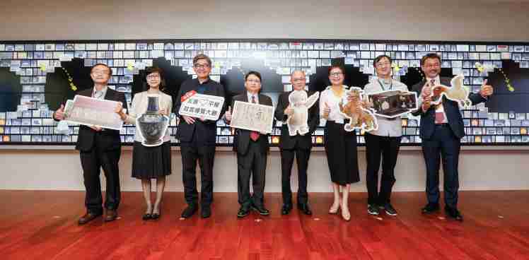 财神娱乐携手创利空间为故宫建置的智慧文物互动导览墙及轮播墙,,今日正式启用。。(左四:财神娱乐新事业暨投资管理总部副总经理杨本豫、、右四:故宫博物院院长吴密察、、、、右三:太极影音董事长黄宝云)